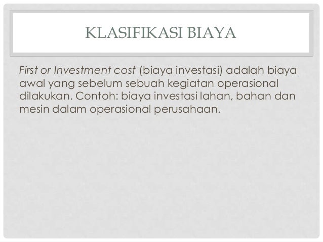 2005 54 didefinisikan sebagai kas atau nilaiekuivalen kas yang dikorbankan untuk mendapatkan barang atau. Investasi yang lazim disebut dengan istilah penanaman modal atau pembentukan modal. Biaya adalah pengorbanan sumber ekonomi yang.