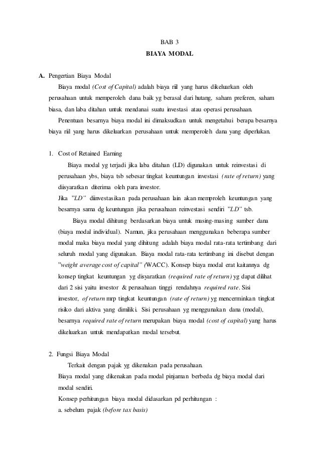 Pdf Analisis Konsep Biaya Modal
