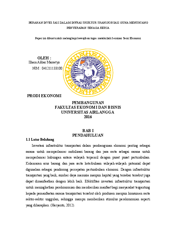 Doc Peranan Investasi Dalam Infrastruktur Transportasi Guna Ilham Akbar Marsetyo Academia Edu