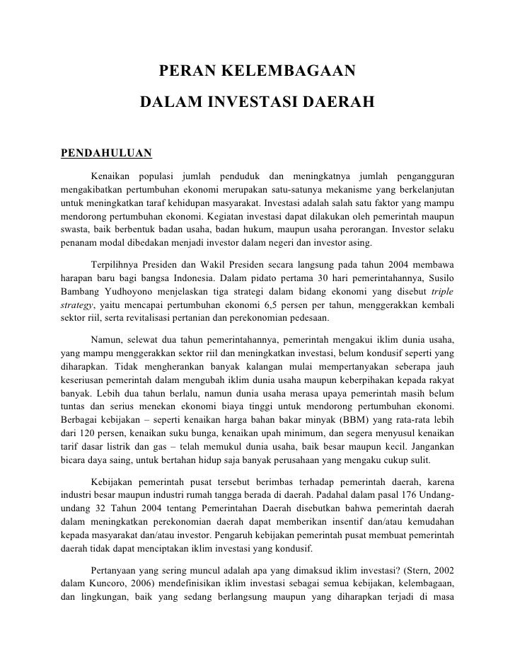 Peran Kelembagaan Dalam Investasi Daerah