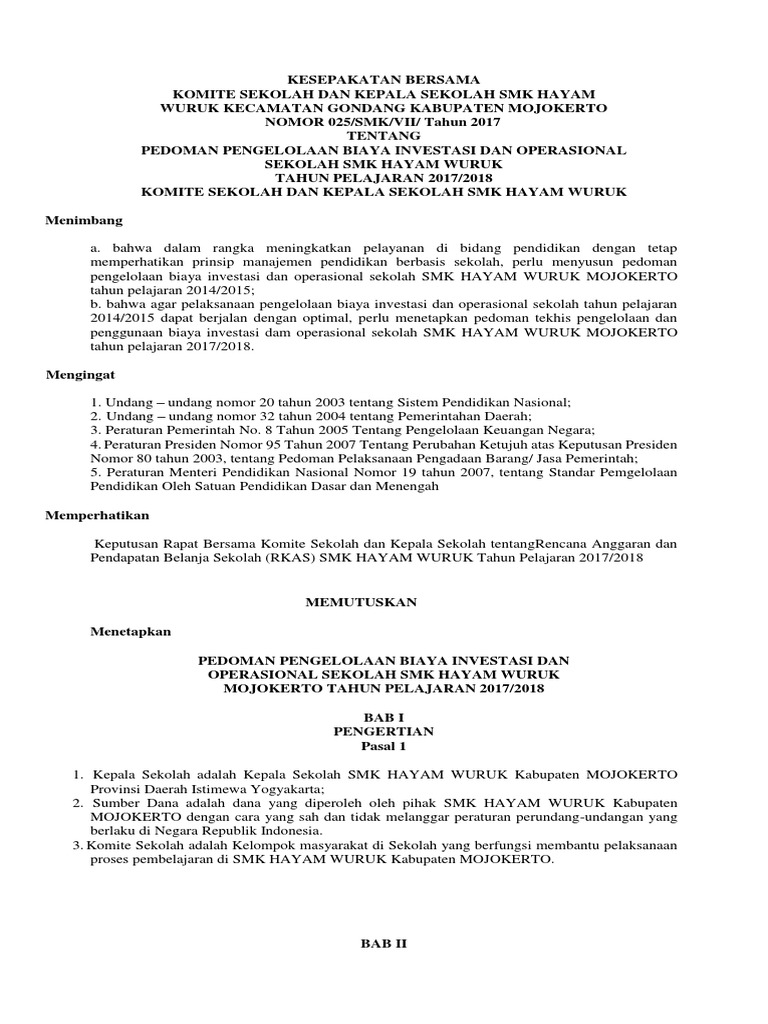 Berita acara kegiatan penyusunan pedoman pengelolaan biaya investasi oprasianal. Tentang pedoman pengelolaan biaya investasi sekolah. Berdasarkan hal ini kerangka pikir penyusunan program dan kegiatan harus didasarkan dalam rangka pencapaian kinerja dampak. 1 disusun mengacu pada standar pembiayaan 2 mengatur tentang sumber pemasukan pengeluaran dan jumlah dana 3 mengatur tentang penyusunan dan pencairan anggaran.
