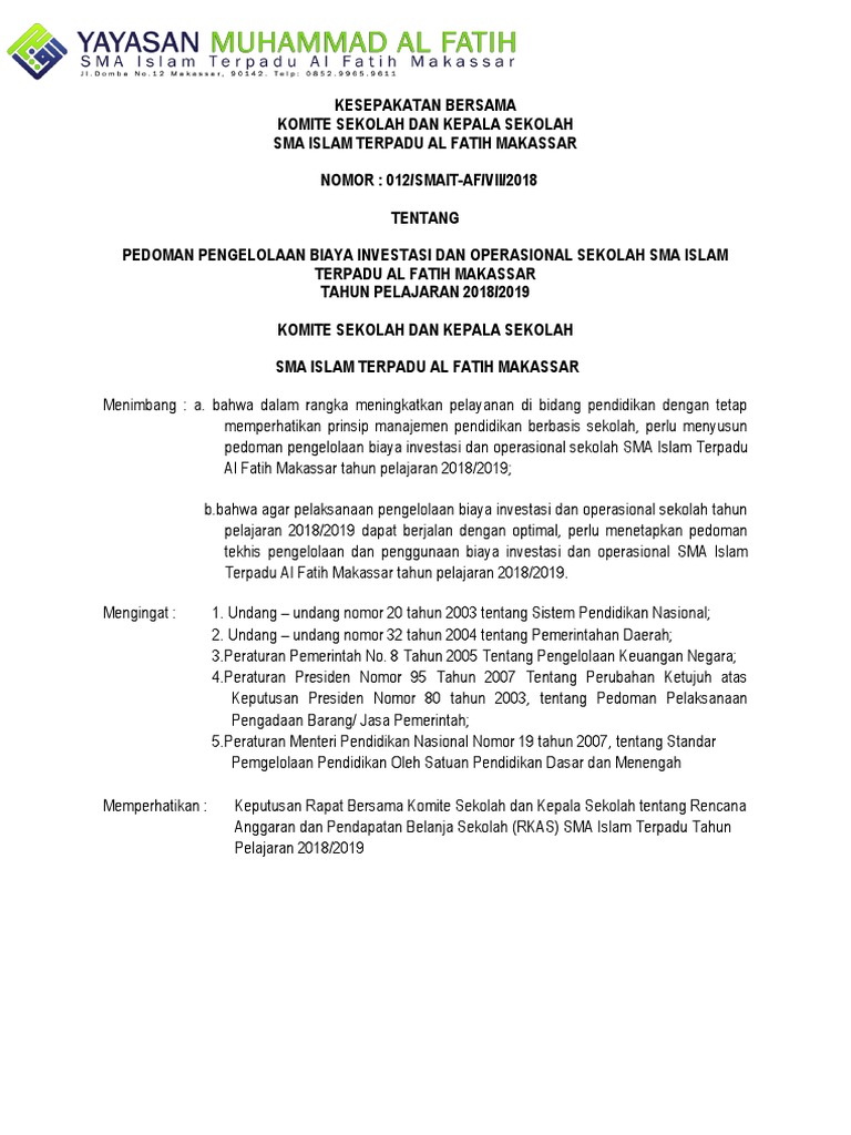 Instrumen akreditasi standar pengelolaan nomor 86. Berita acara kegiatan penyusunan pedoman pengelolaan biaya investasi dan operasional. Pedoman pengelolaan biaya investasi dan operasional 1 sekolah madrasah menyusun pedoman pengelolaan biaya investasi dan operasional yang mengacu pada standar pembiayaan.